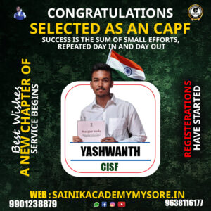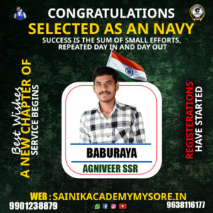 “Joining Sainik Academy Mysuru was the best decision of my life. The daily physical training, written coaching, and constant motivation helped me clear the Agniveer selection confidently. The discipline I learned here will stay with me forever.”